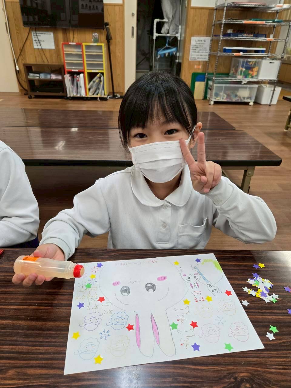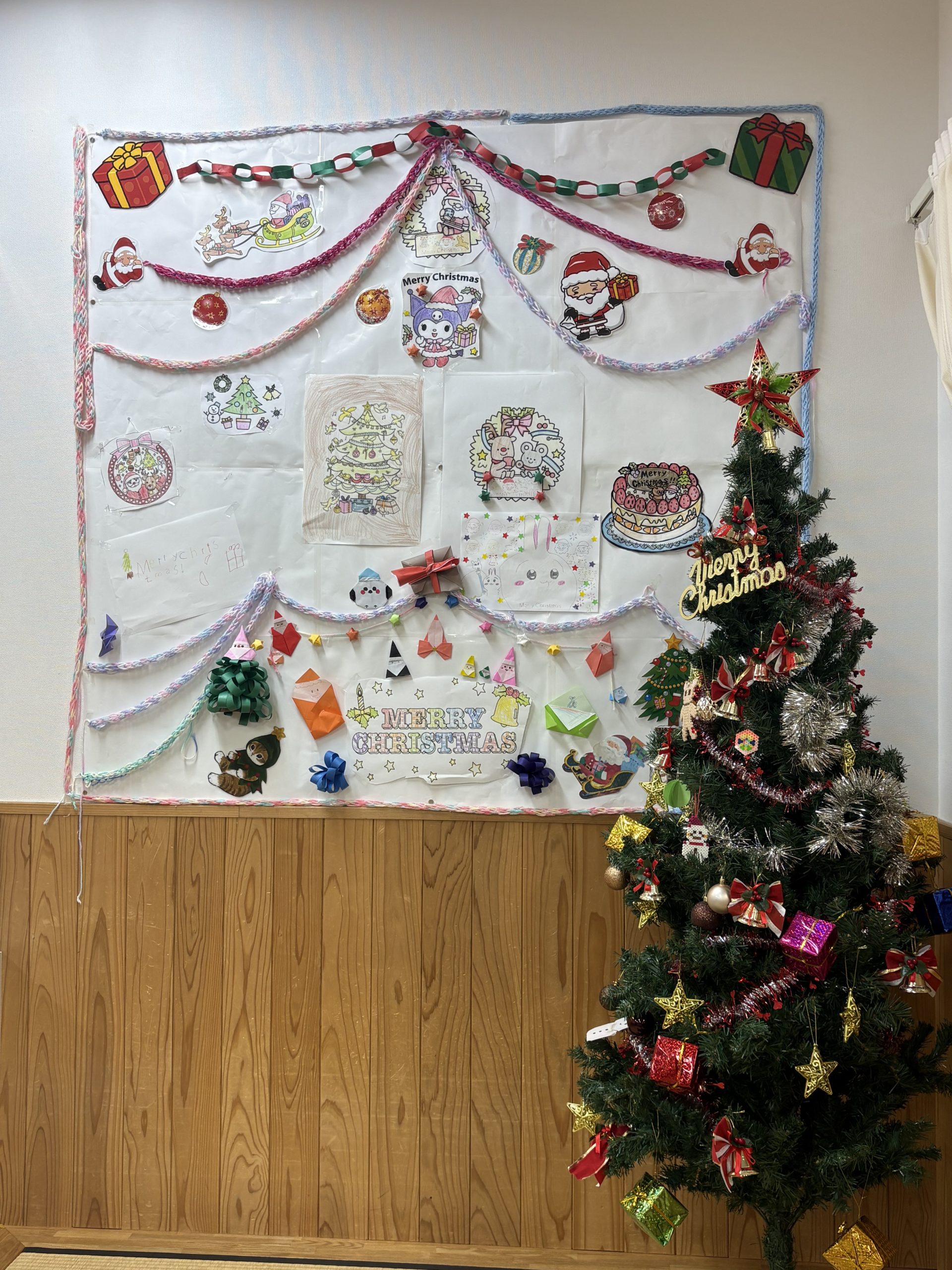 クリスマスに向けて、子どもたち毛糸を編んだり、ぬりえを飾ったりしてくれています。